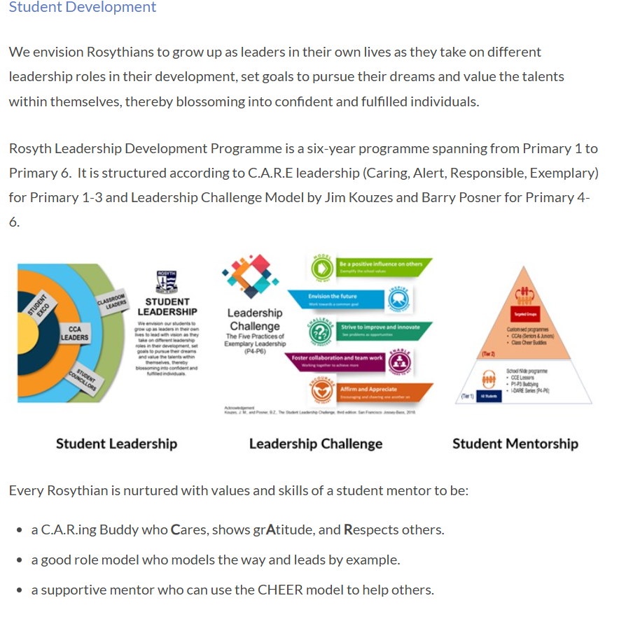 We envision Rosythians to grow up as leaders in their own lives as they take on different leadership roles in their development, set goals to pursue their dreams and value the talents within themselves, thereby blossoming into confident and fulfilled individuals.
